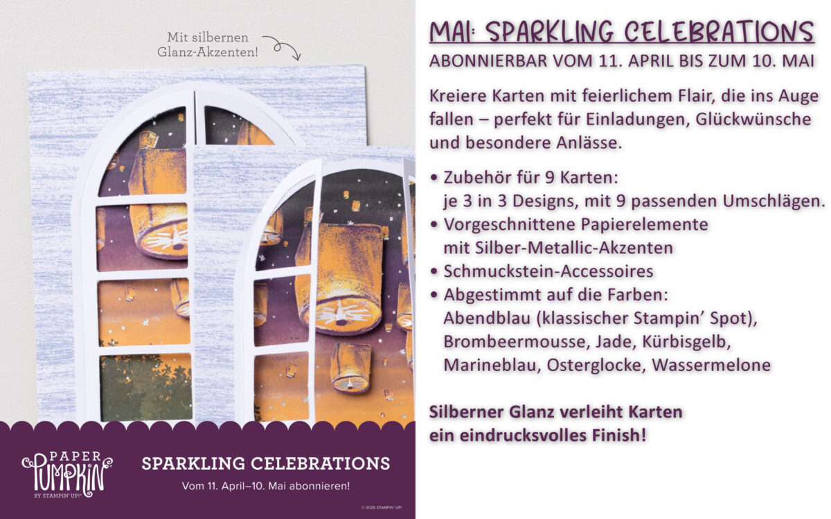 Jedes Set enthält ein Klarsichtstempelset, einen klassischen Stampin’ Spot und Schritt-für-Schritt-Anleitungen, um exklusive Kreativprojekte zu gestalten – darunter Karten, Anhänger und Geschenkverpackungen.
